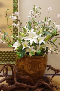 ヨシノ桜とシベリア、葉っぱは木いちご 2020年12月13日2012年4月5日 まだ会津は4月だというのに 雪が降り、寒い日が続いております。 少しでもお客様に 春の気分を!! ヨシノ桜とシベリア、葉っぱは木いちごです。
