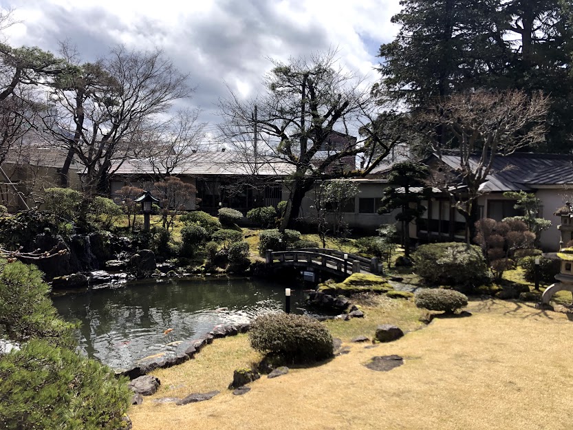 萬花楼のお庭も雪吊りが撤去され