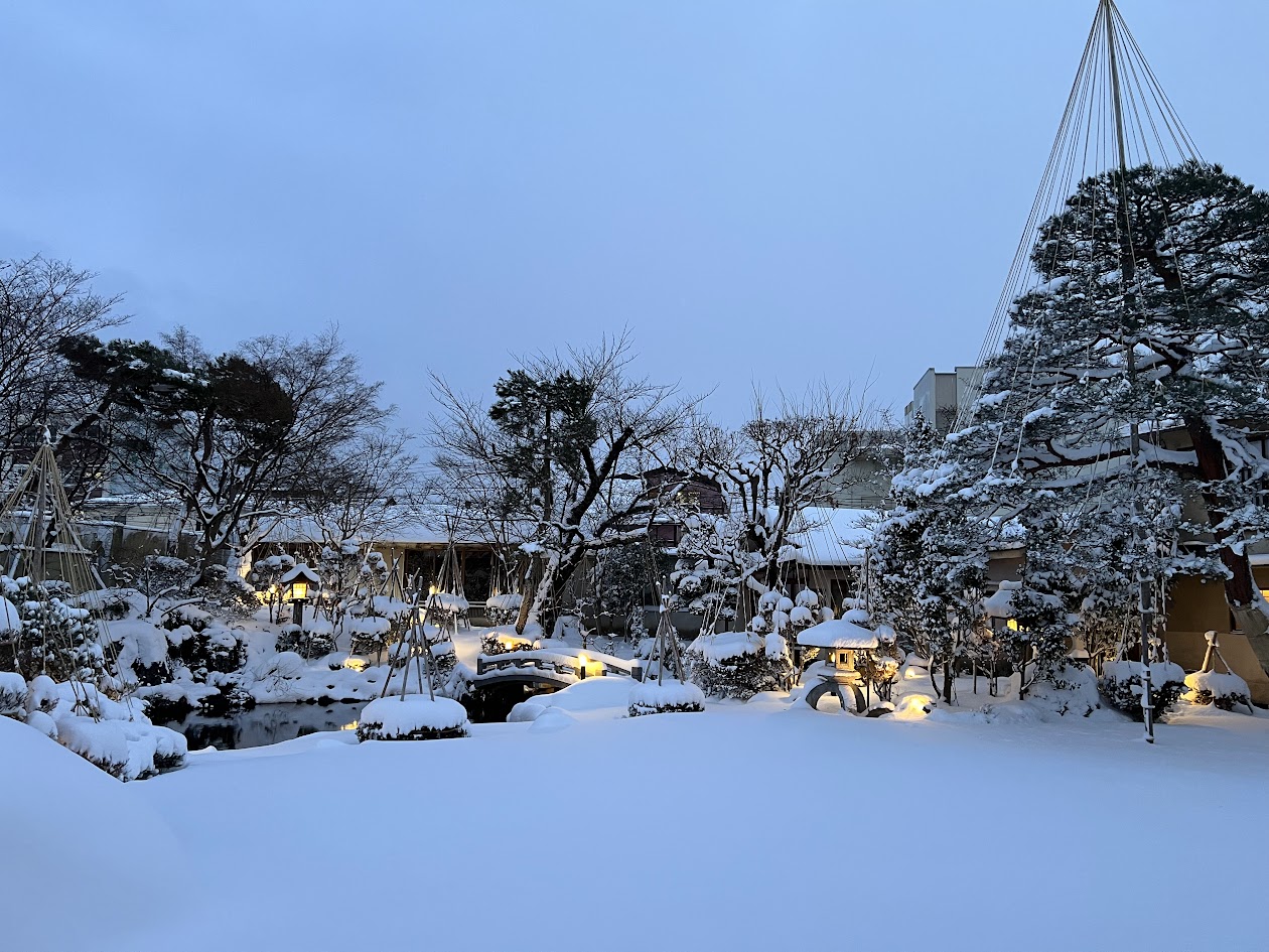 萬花楼のお庭もちょうど雪景色が綺麗です