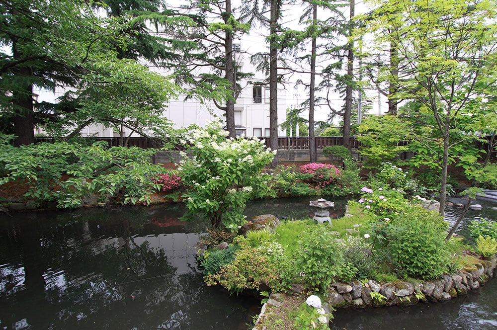 池の上にせり出した独特な造りになっております。