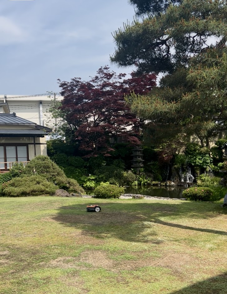 今年は芝刈り機自称ルンバくんに頑張ってもらってます