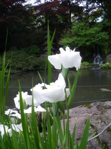 白と薄紫のあやめが満開