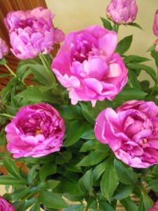 赤紫のキレイに咲いた芍薬